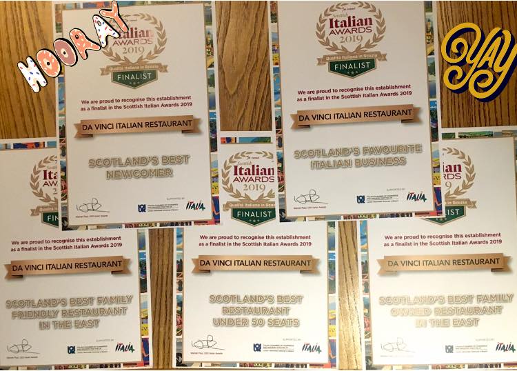 In November 2022 at the Scottish Italian Awards, Da Vinci Ristorante Italiano was awarded the prize as the Most Authentic Italian Restaurant in Scotland